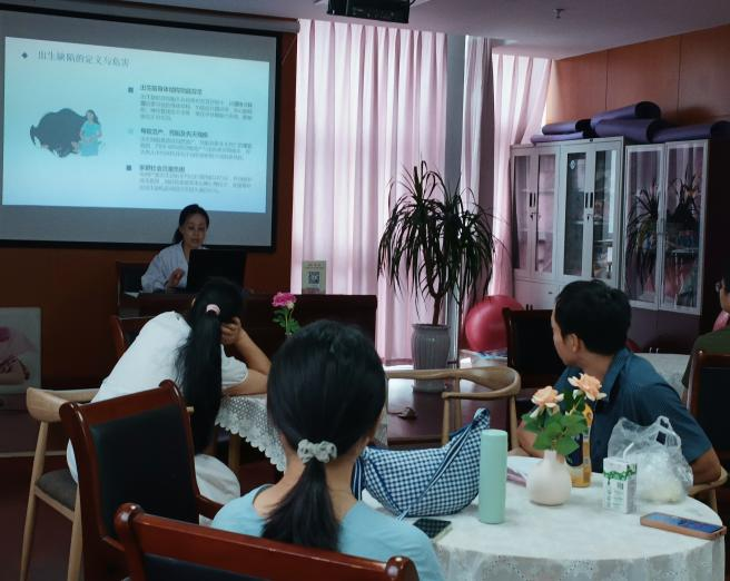 9月13日上午,在丹阳市妇幼保健院孕妇学校,邀请到我院营养科副主任医师朱剑,开展《出生缺陷预防与孕期营养》健康知识讲座。应邀参加本次讲座的有孕优检查的备孕夫妇、孕妇及家属、本院职工新婚夫妇及社会育龄妇女等共计40余人。朱主任深入浅出的讲解了出生缺陷的定义、类型、危害及预防的三道防线,重点强调了围孕期营养对预防出生缺陷的的关键作用,对参加者给予科学生活方式的指导,切实提高了大家对出生缺陷的认识。最后,朱主任通过朗朗上口的总结:戒烟戒酒补叶酸,一级预防走在前!孕中营养要全面,二级筛查保平安!心情愉悦多运动,按时产检遵医嘱!产后筛查莫延迟,三级干预见成效!赢得了在场听众们的一致好评!通过以上系列活动,有效提升公众对出生缺陷的认知度和预防意识,为减少出生缺陷的发生、保障母婴健康尽责尽力。