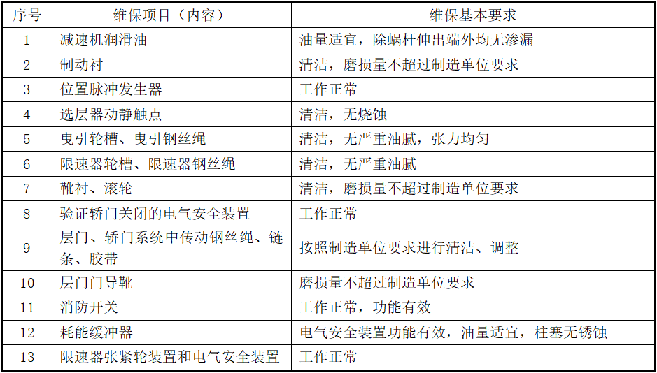 4、维保基本要求,规定为“制造单位要求”的,按照制造单位的要求,其他没有明确的“要求”,应当为安全技术规范、标准或者制造单位等的要求(下同)。