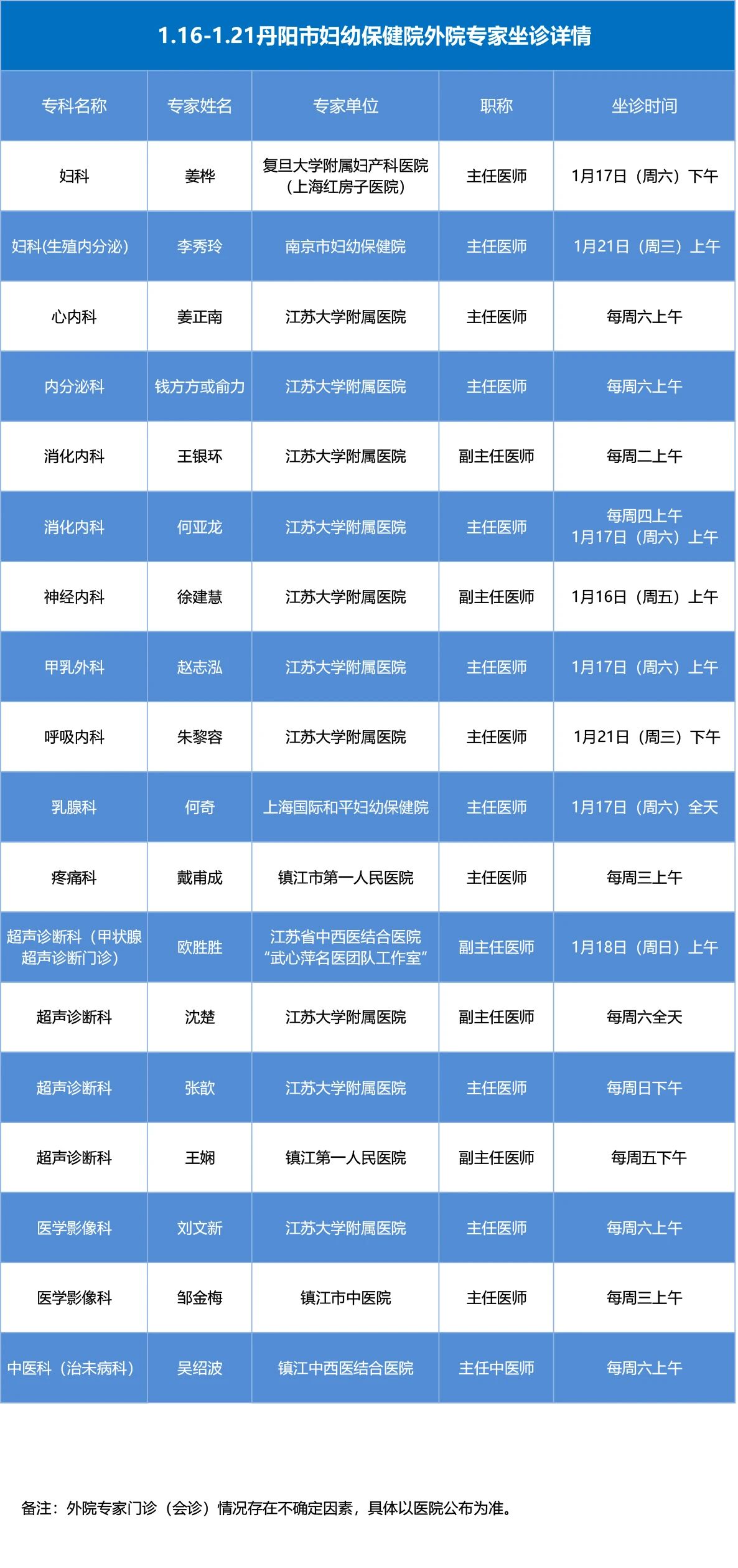 【医讯】1.16-1.21外院专家坐诊详情表
