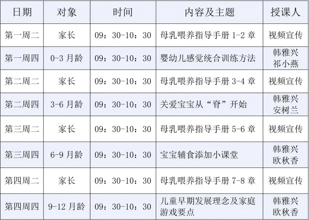 丹阳市妇幼保健院家长学校(父母课堂)2026年课程表