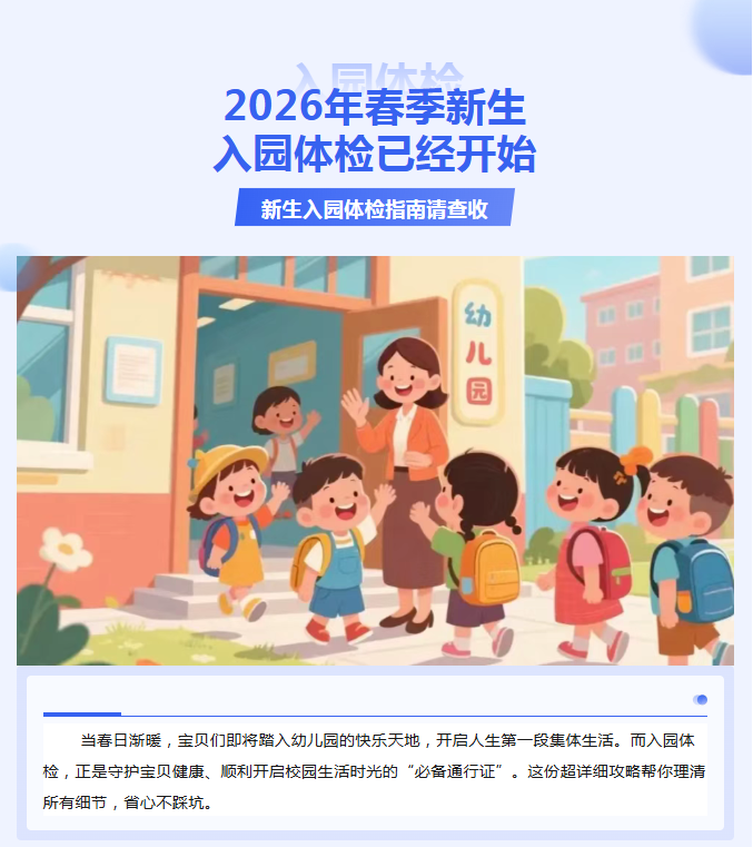 【入园体检】2026年春季新生入园体检已经开始,新生入园体检指南请查收~