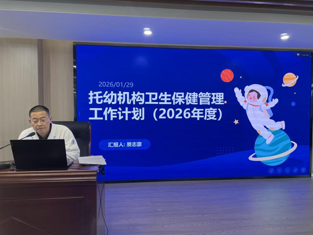 会议最后,景主任详细介绍了2026年度托幼机构卫生保健管理工作计划,以“五健”促进行动为引领,托幼机构为主阵地,坚持预防为主等原则,构建一体化服务链条,确保下一年度工作有序进行。