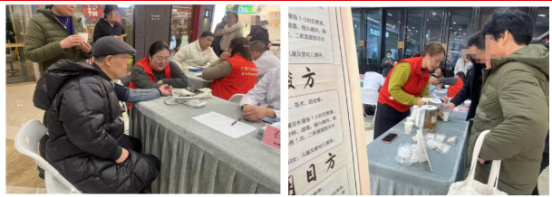 参加义诊的志愿者们不仅协助义诊记录、血压监测、视力筛查等健康服务,还现场免费冲泡中药茶饮,为采购年货的市民朋友提供贴心的关爱,让健康义诊更加贴近生活。