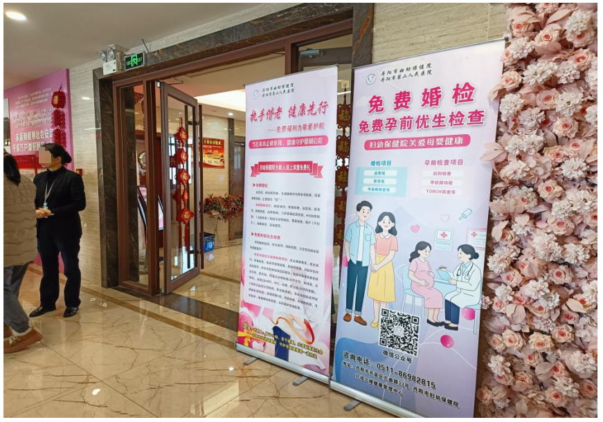 2月14日上午,丹阳市妇幼保健院健促科主任冷惠玉和健康管理中心主任史陈翠,一起走进市婚姻登记处,开展婚育知识科普与咨询活动;现场传递适龄婚育、优生优育、责任共担的新型婚育观,积极引导新人关注家庭健康!在新型婚育科普展示区,通过主题展板宣传国家婚育政策,让政策与知识“可感可及”!在幸福生活起航区,史陈翠主任通过“新婚学校”循环进行婚育知识科普讲座,现场开展一站式婚育咨询服务;用科学理论支持新人们备孕新生命!