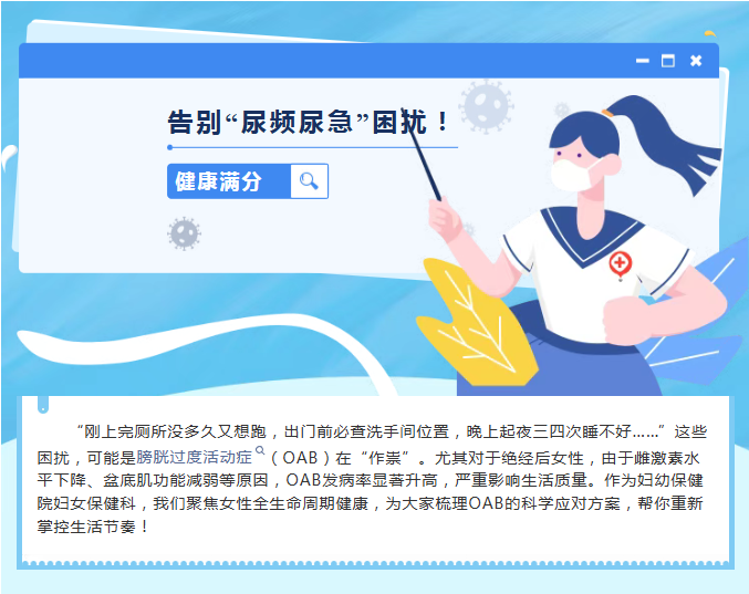 【妇幼健康科普】告别“尿频尿急”困扰!绝经后女性OAB的全面解决方案